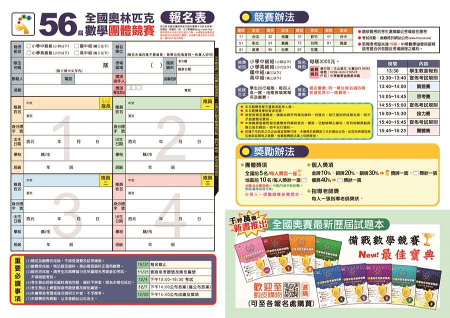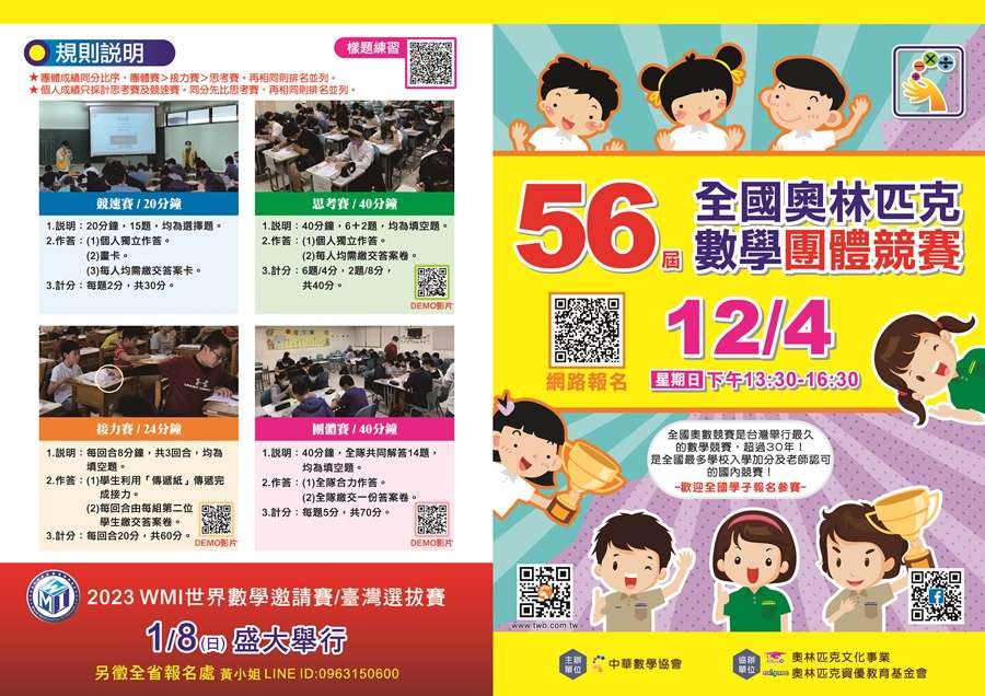 二、檢附「第 56 屆全國奧林匹克數學團體競賽」競賽活動簡章,供貴校參閱。