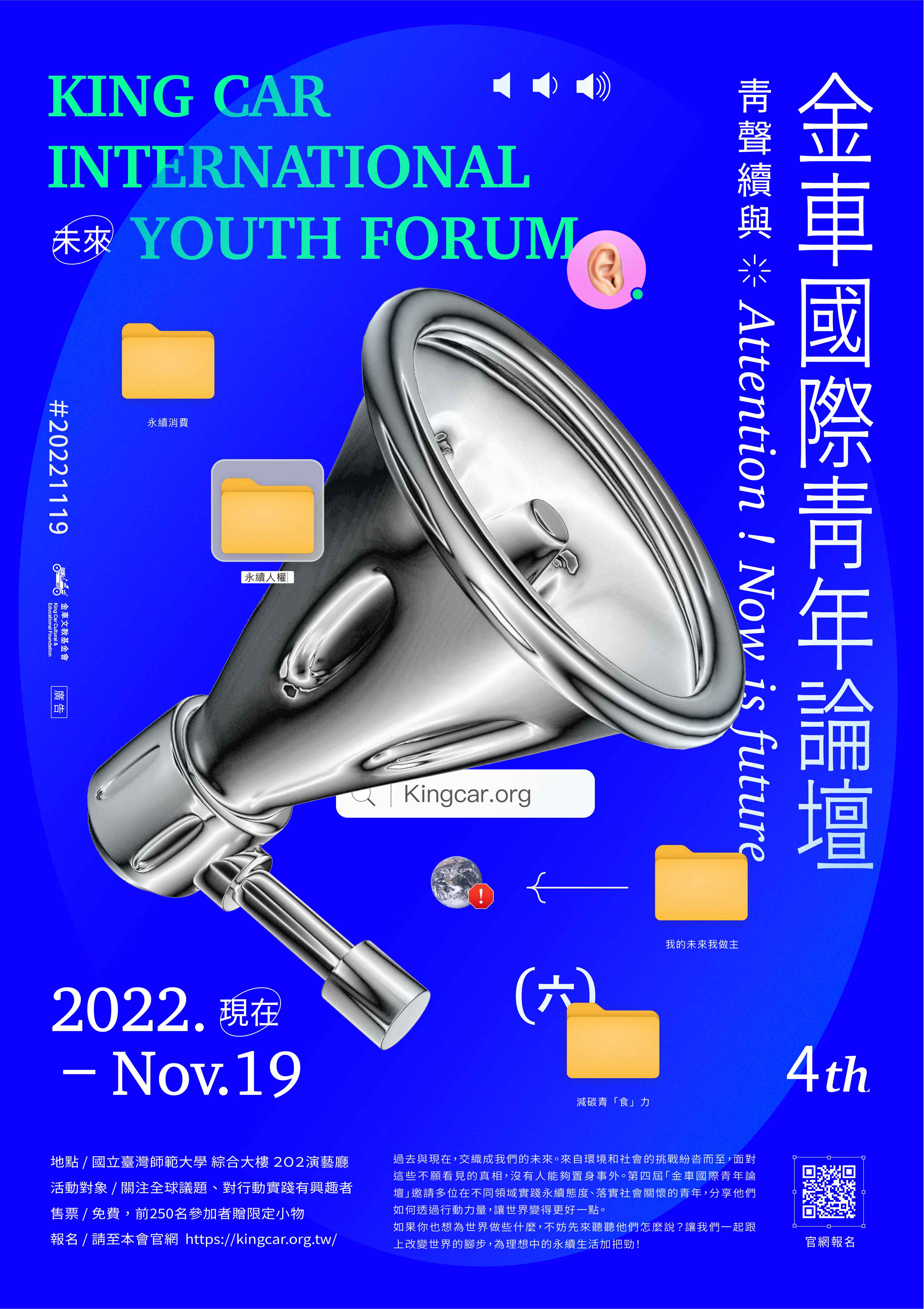 (七)活動詳情:請上本會官網 kingcar.org.tw 》我要報 名》金車國際青年論壇