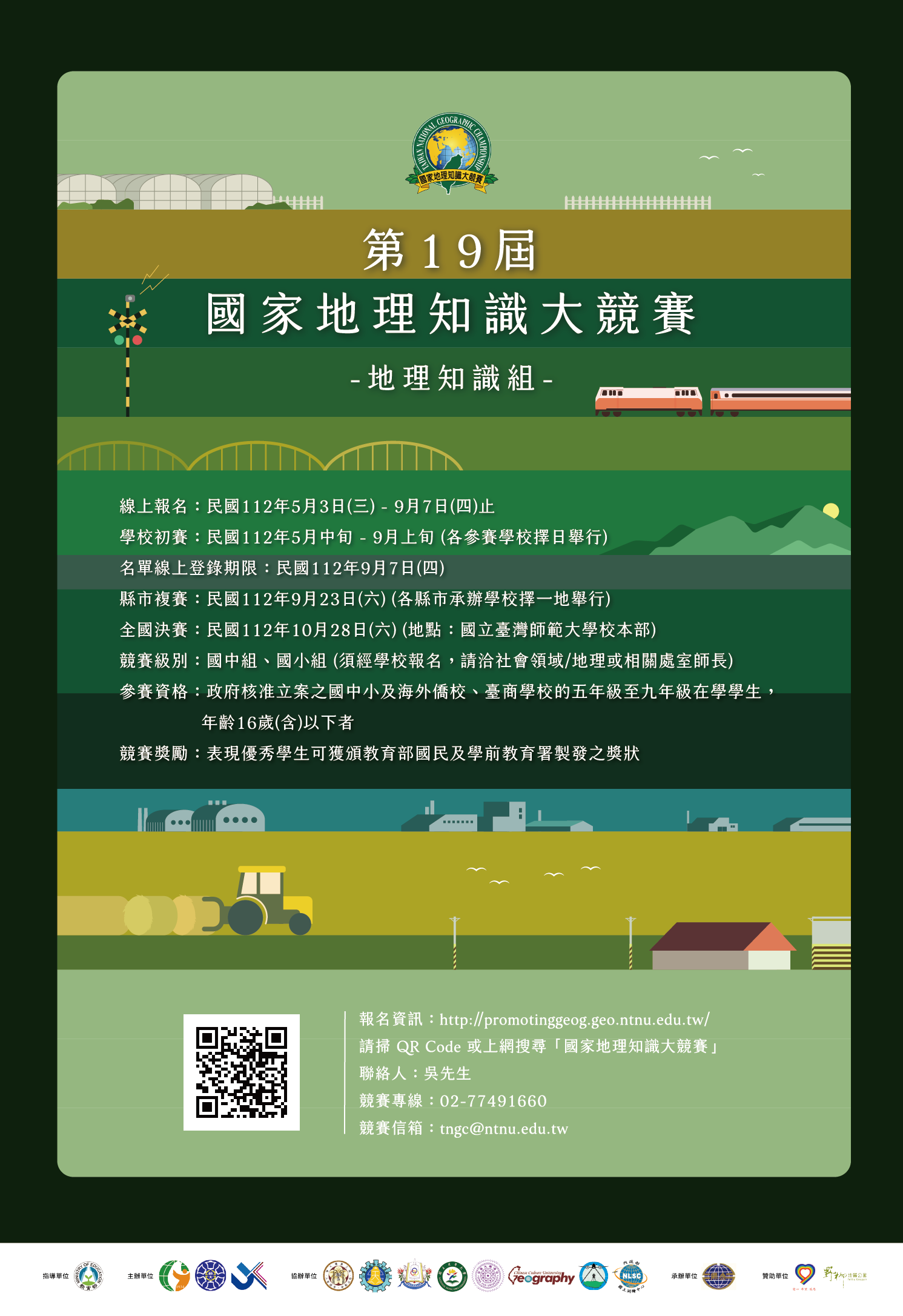 函轉中華民國地理學會辦理112年第19屆國家地理知識大競賽,鼓勵貴校學生踴躍參加。