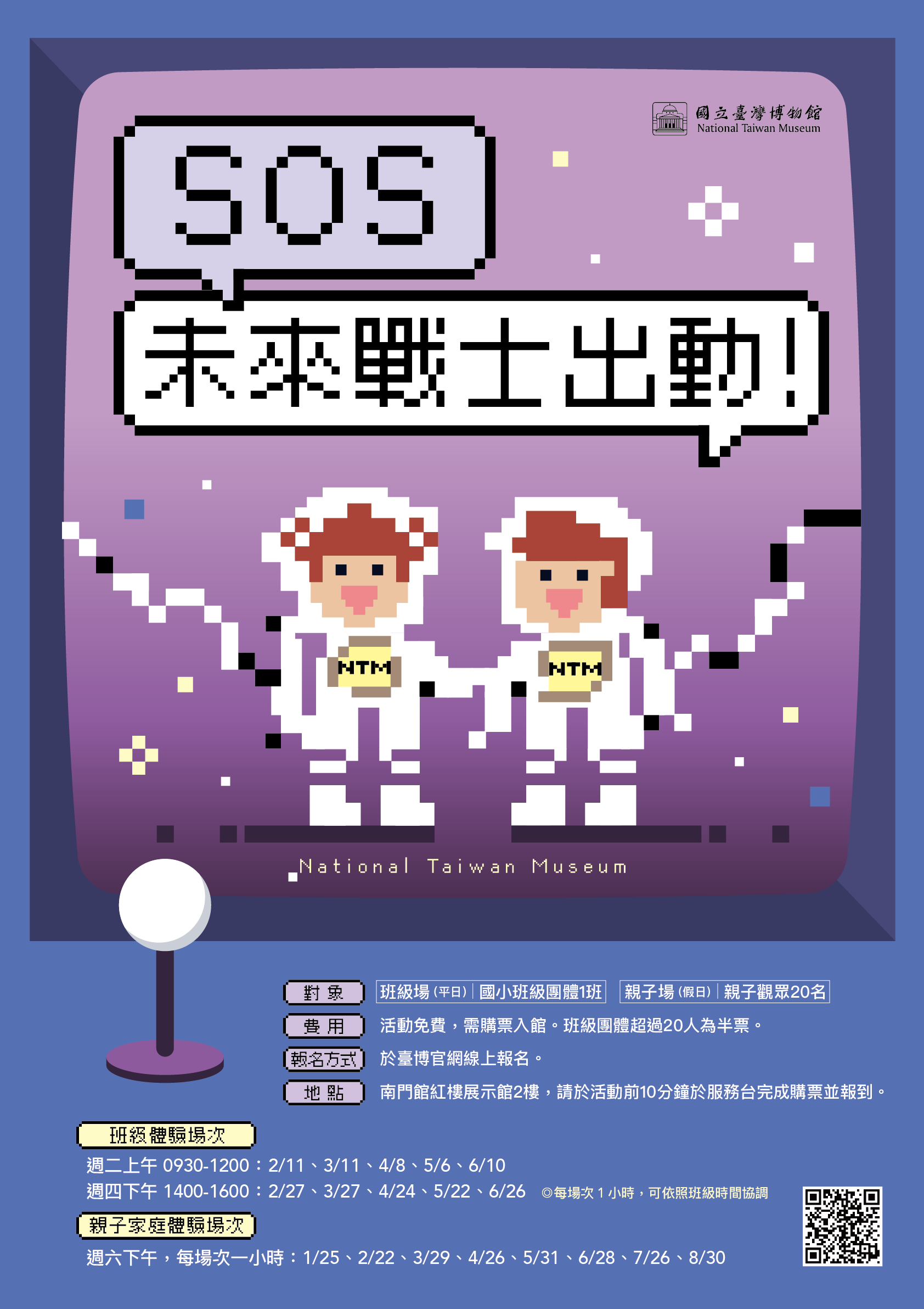 二、本館訂於114年1月24日(星期五)、1月25日(星期六)及2月7 日(星期五)假南門館(臺北市中正區南昌路一段1號)辦理三 梯次教師研習課程,請轉知所屬並鼓勵教師報名參加。參 與研習之教師,將依課程時長核發研習及環境教育時數。