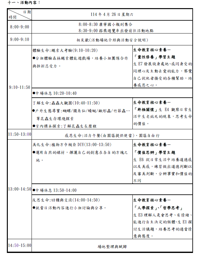 (二)活動時間:114年4月26日(星期六) 8:00-15:00