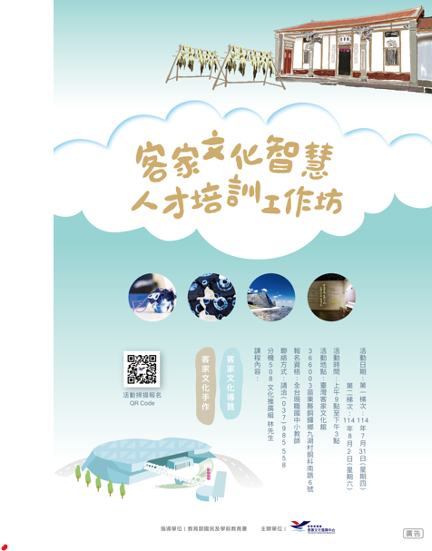 三、本活動為免費參加,參加對象為現職國中小教師,報名網 址:https://thcdc.hakka.gov.tw/onlineservice/1362 /1394/12321/12323/1437/138248 /147653/。