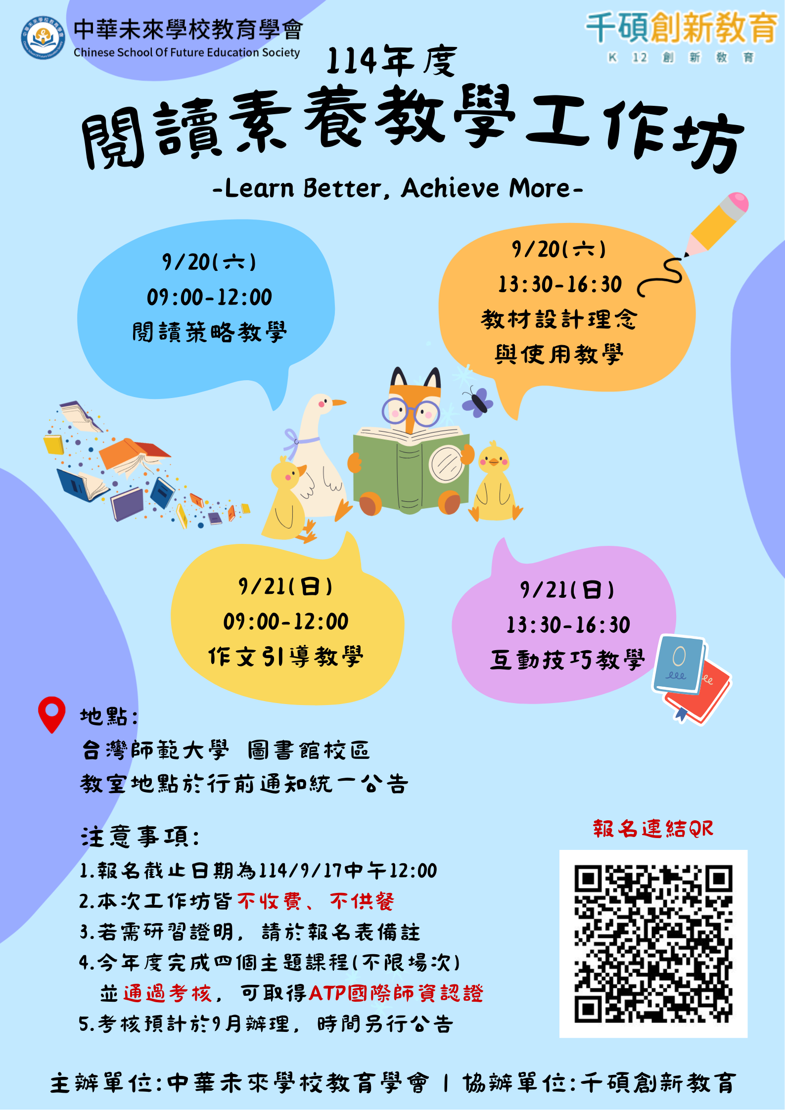 一、為提升教師素養導向教學能力,強化閱讀理解教學專業, 本會特辦理「ATP素養導向閱讀師資培訓工作坊」。