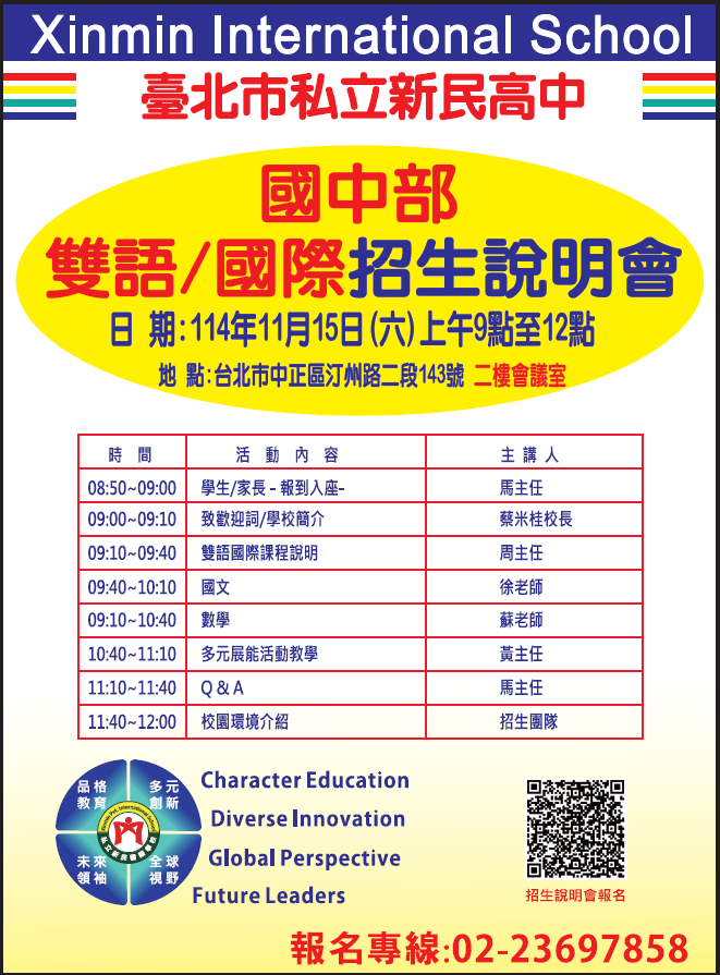 三、報名方式:可至本校官網或掃描附件QR Code。