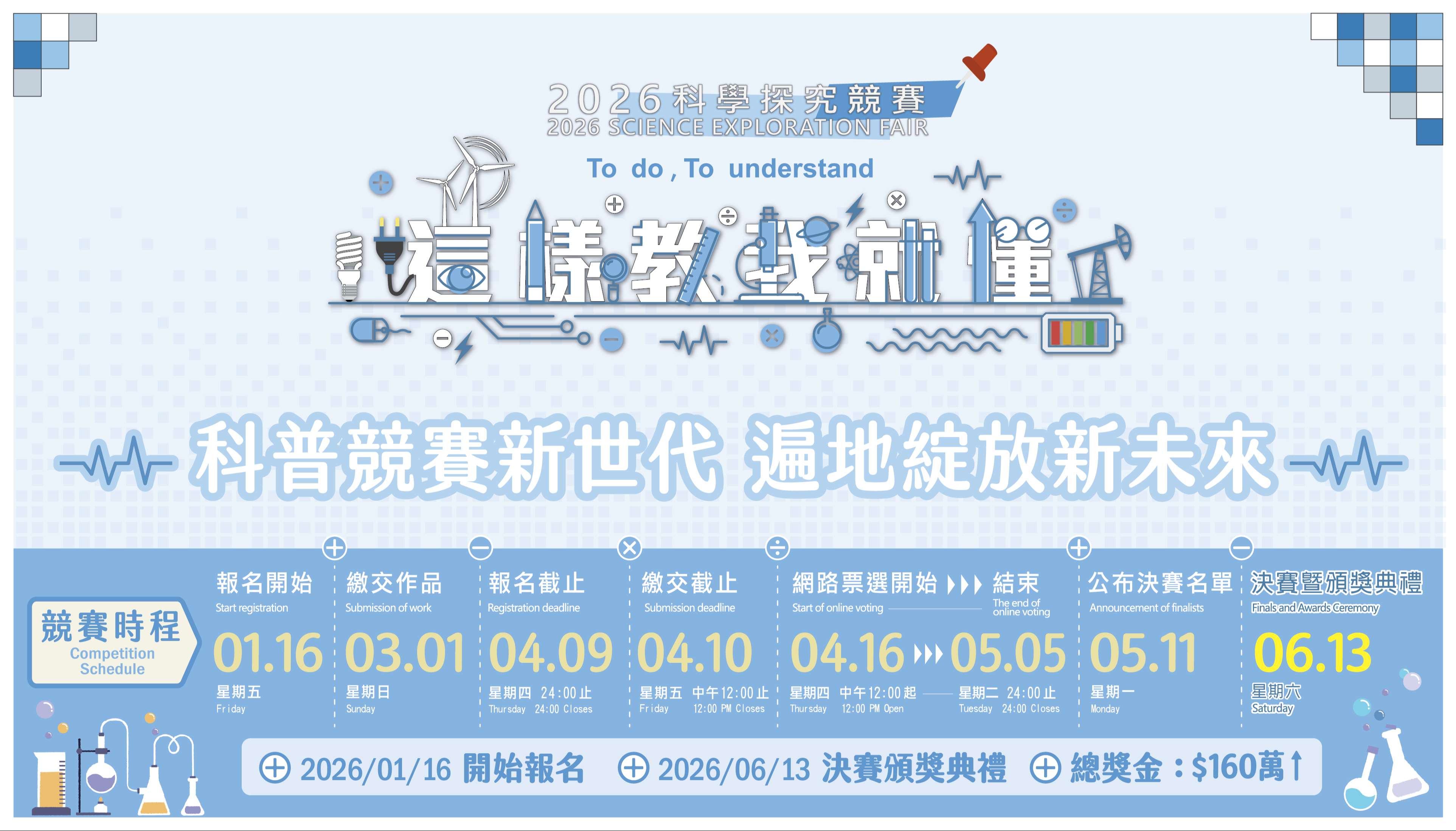 八、報名資訊、競賽方式與獎勵等相關資料請參閱附件或計畫 網站(官網:https://sciexplore2026.colife.org.tw; 粉絲專頁:https://www.facebook.com /ScitechvistaFair)。